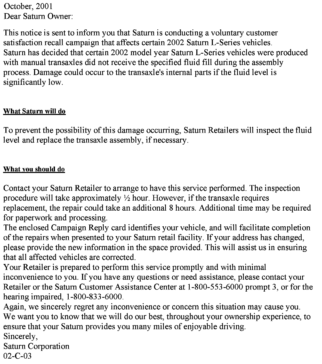Campaign - M/T Fluid Level Inspection/M/T Replacement