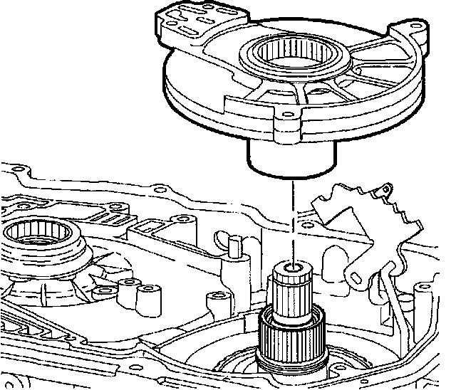 2. Install driven sprocket support and 2nd clutch assembly into transaxle case. When installed properly, driven sprocket support sits slightly below machined surface of transaxle case.