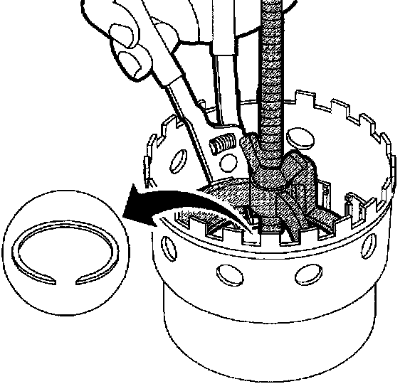 6. Remove return spring snap ring.