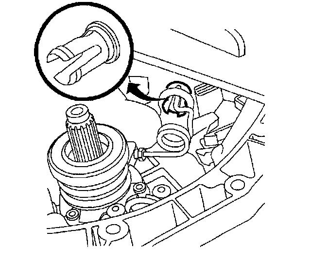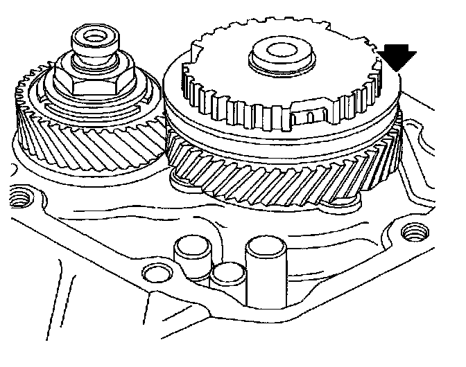 47. Engage 1st gear on transaxle and engage 5th gear by pressing down 5th gear synchronizer sleeve.