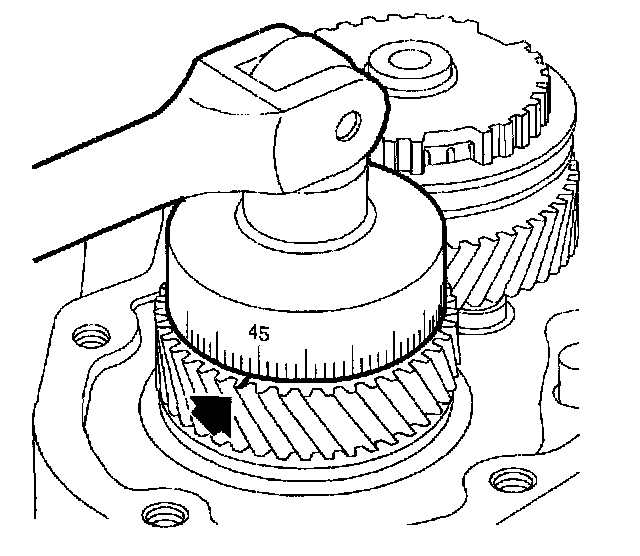 50. Tighten output shaft nut in 2-3 stages until the zero (0) on socket is at marked gear tooth.