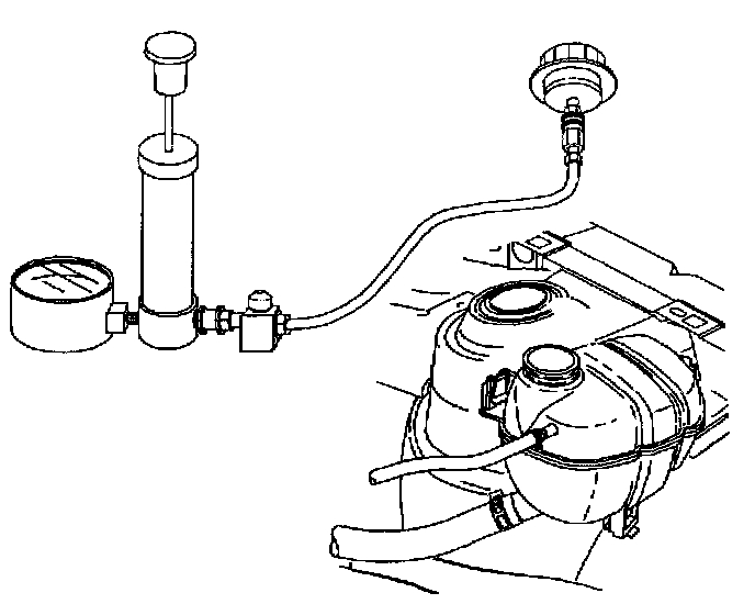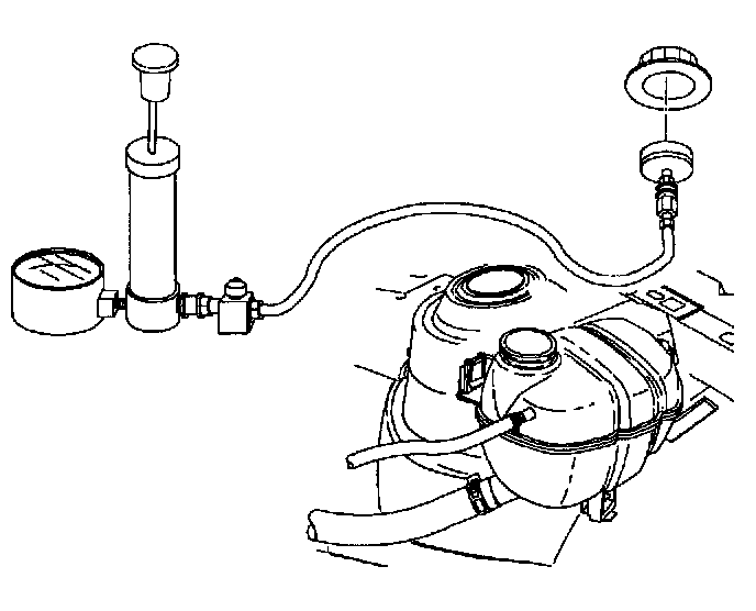 1. Remove the pressure cap from the coolant surge tank.