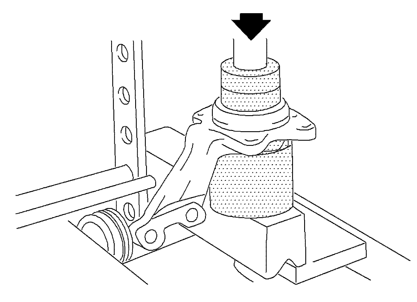 1. Press in the new bearing as shown in the illustration until seated using the J 44563 or equivalent.
