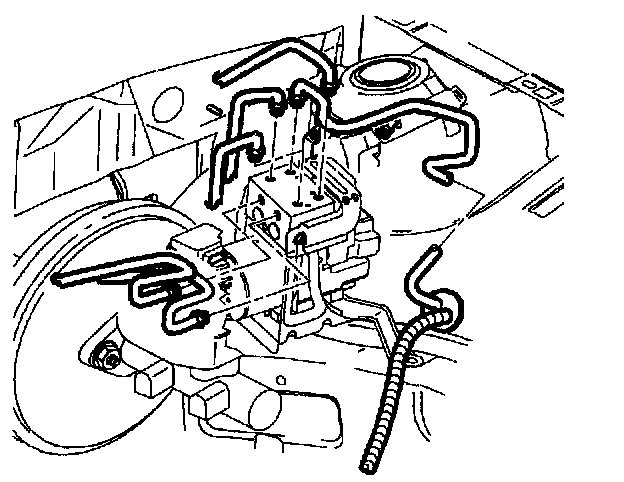 3. Position brake pipes into ABS control assembly and tighten brake pipe nuts.