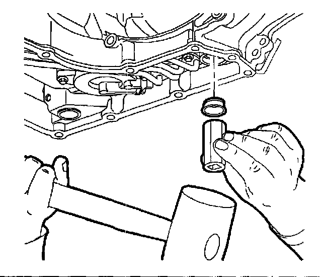 8. Install new filter neck seal into transaxle case. A large socket can be used as an installation tool. Two mallets can be used as well.