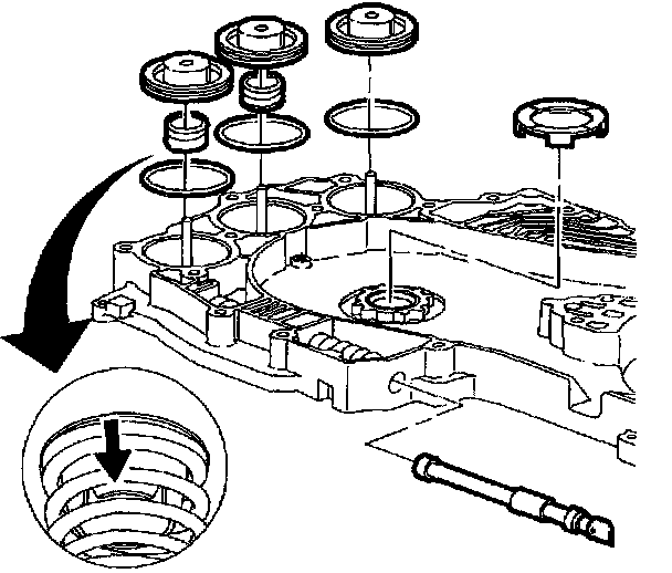 2. Install 1-2 and 2-3 accumulator assist springs.
