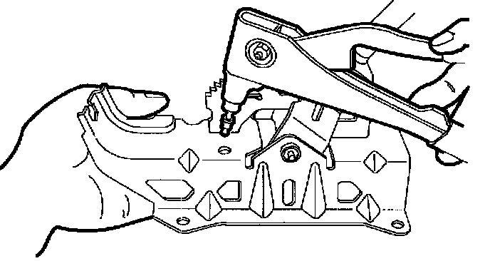 3. Position solenoid to control assembly and install solenoid pop rivet with a rivet gun.