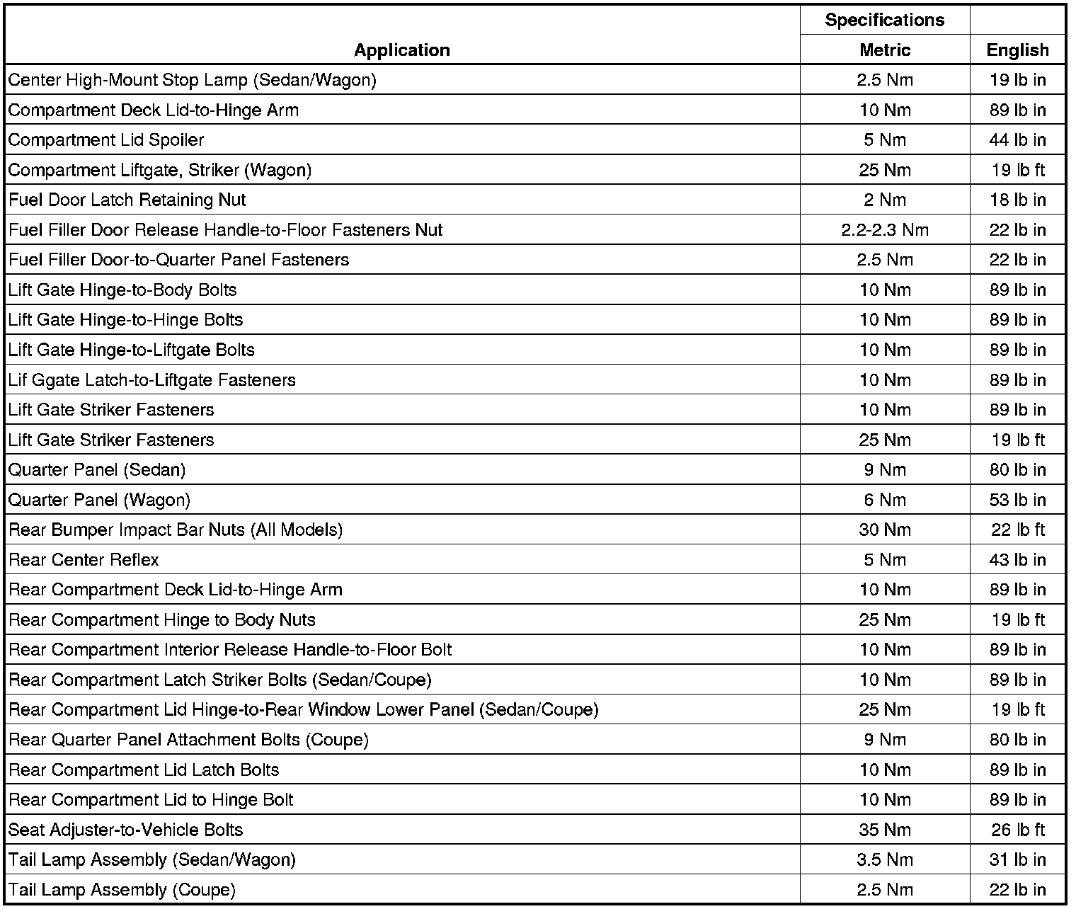 Fastener Tightening Specifications - Body Rear End