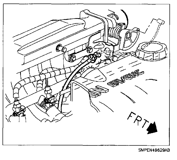 8. Connect fuel supply line and fasten fuel line clip to brace.