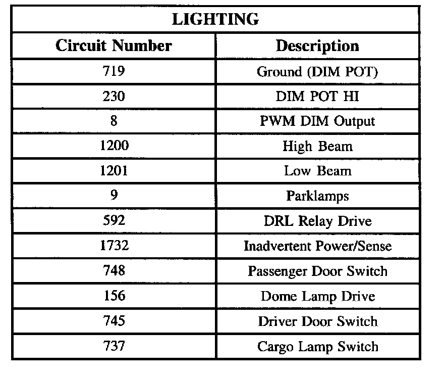 Circuit assignments for the Body Control Module (BCM) relating to lighting: