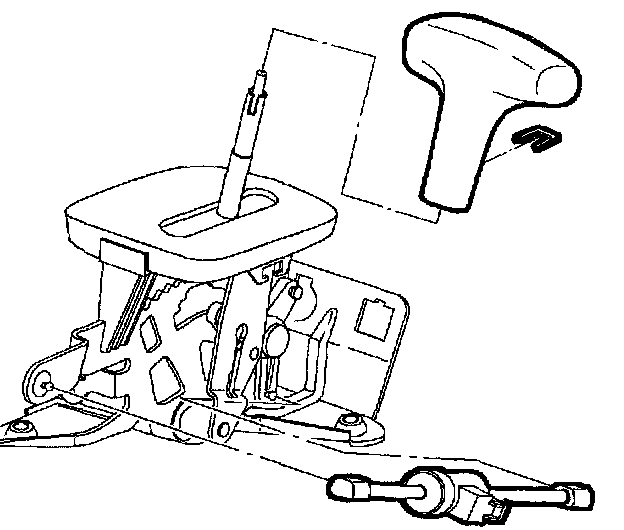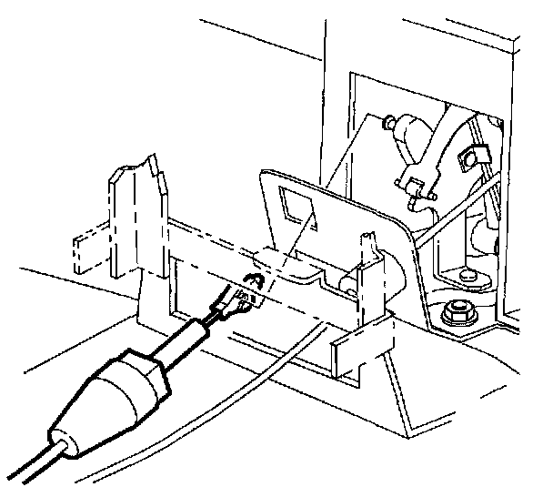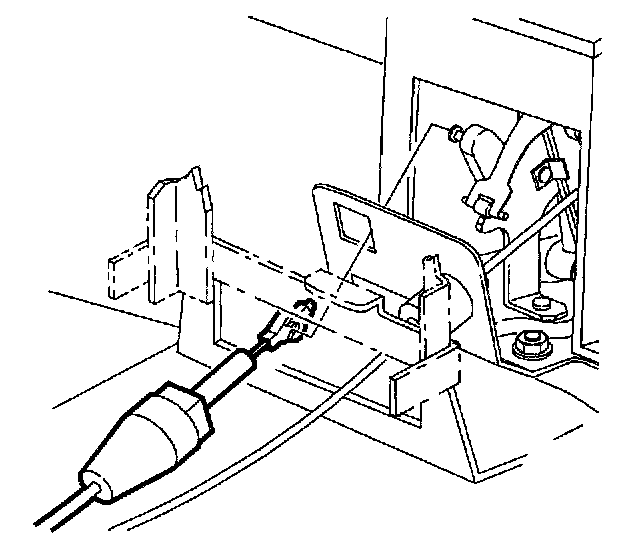 7. Depress the two tabs on the end fitting of park lock cable assembly and remove from control base assembly.