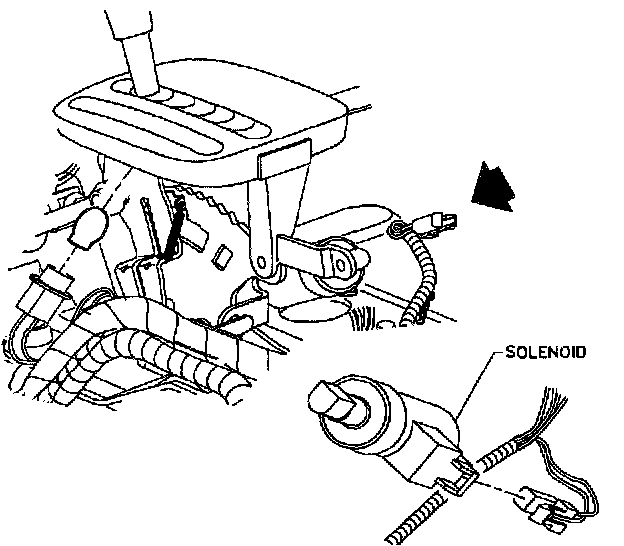 12. With control base assembly out of vehicle, use a screwdriver to disconnect the BTSI solenoid plastic retainers and remove BTSI solenoid from control base assembly.