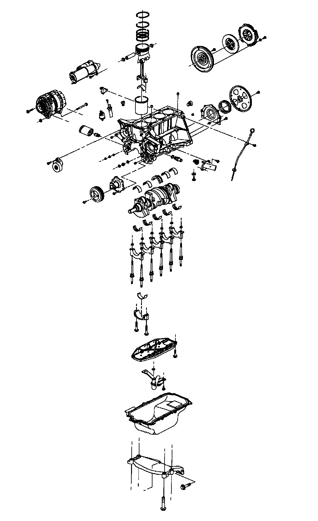 The cast iron crankshaft is supported by five precision insert bearings, with crankshaft thrust taken at the middle bearing. Replacement undersized bearings are available for crankshaft journal repairs up to 0.25 mm (0.010 inch).