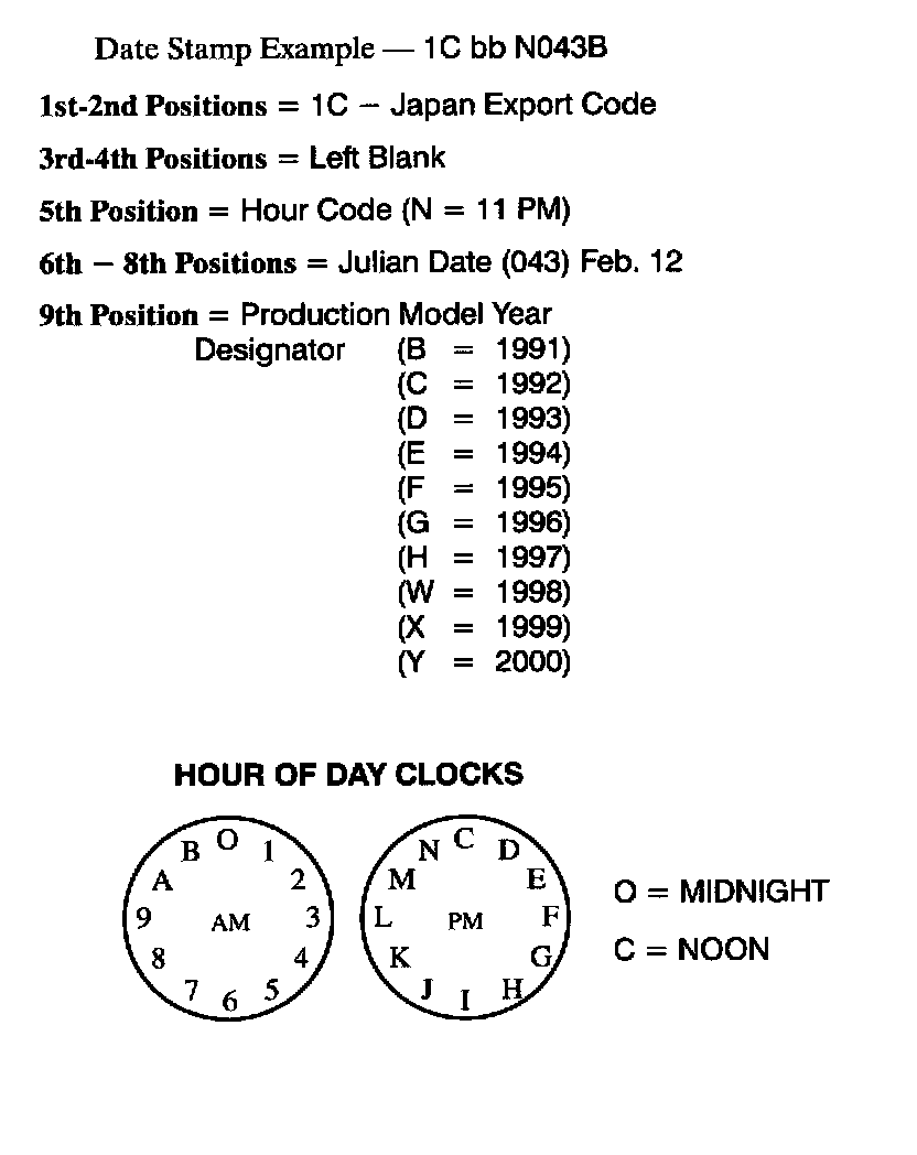 The Vehicle Identification Number (VIN) or service assembly date stamp, in the event an engine is replaced after the vehicle has been put in service, is stamped on the cylinder block. The identification alfa characters and numbers are located on a casting pad located at the left, rear corner of the engine block. An example of the service replacement engine date stamp would be: