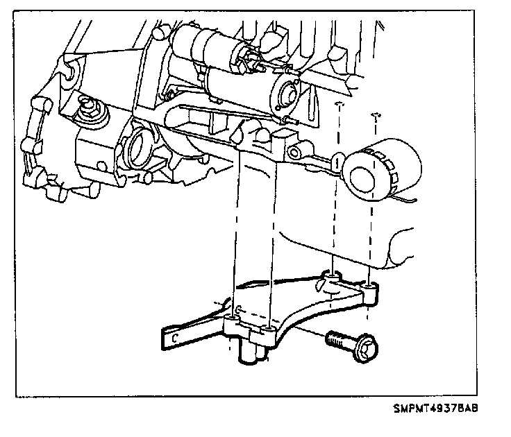 19. Install engine stiffening bracket to engine.