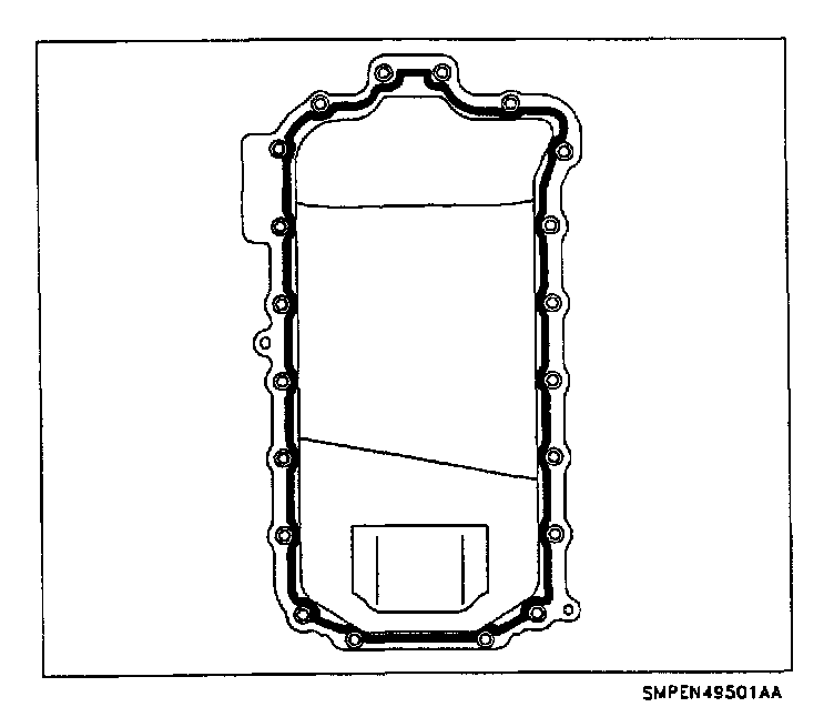 14. Apply a 4.0 mm (0.160 in.) bead of RTV in the oil pan groove, routing the RTV bead toward the inside of all bolt holes.