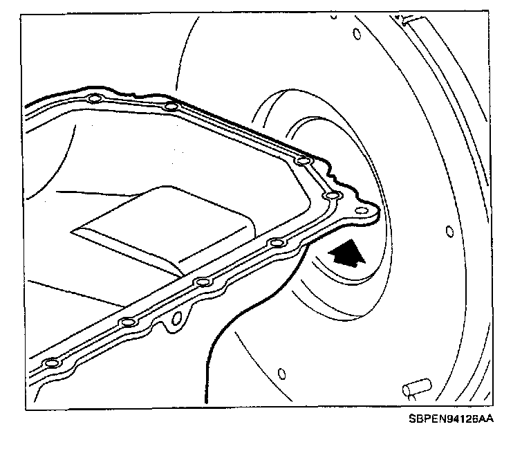13. Make sure the oil pan surface is free of cured RTV and cleaned with a chlorinated solvent, such as carburetor spray cleaner, brake clean, or alcohol Saturn P/N 21007432 (or equivalent).