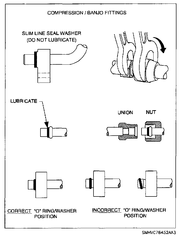 O-RINGS AND SLIM LINE SEAL WASHERNOTE: Use only R-12 Refrigerant oil (mineral) to lubricate O-rings. Use of R-134a (PAG) oil will cause premature corrosion of fitting joints.