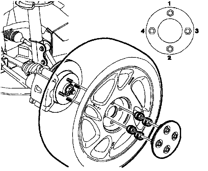 6. Install wheel nuts and tighten in a crisscross pattern. Repeat tightening pattern to make sure torque is correct.
