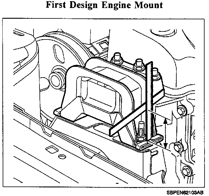 The measurement procedure in step 2 of this procedure can be used to measure sag on both first and second design engine mounts. However, the measurement procedure in step 3 can only be used for the second design mount.