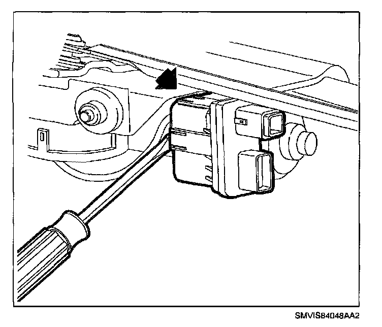 3. Using a thin bladed screwdriver, gently pry center tabs of wiper control module retainer arms.