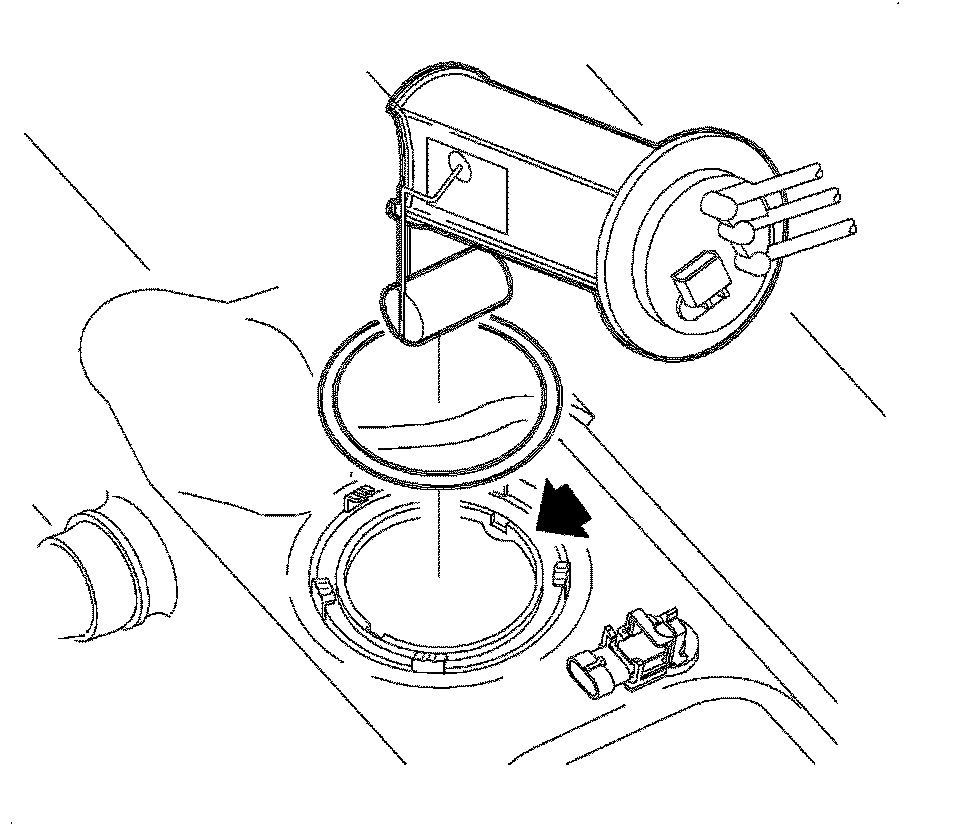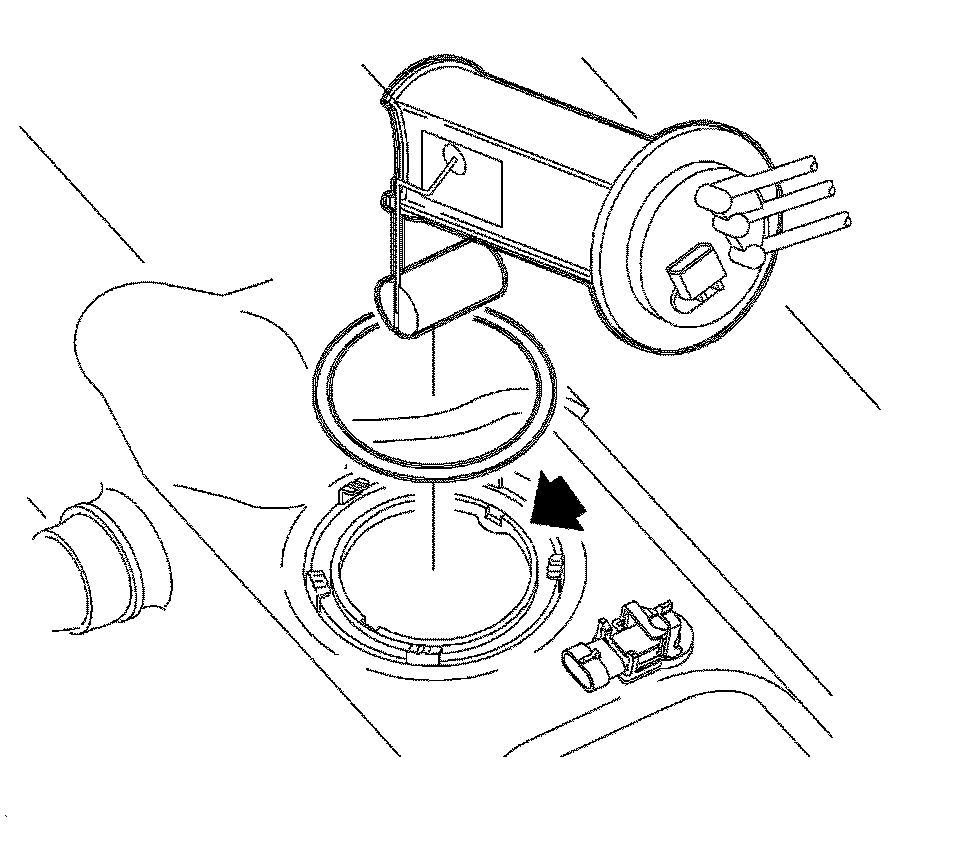 Notice: Care must be taken not to bend or twist the fuel pump filter or sending unit float arm during removal or installation of the fuel pump module assembly. A damaged fuel pump filter restricts fuel flow to the pump and a bent sending unit arm will not provide accurate readings. Care must be taken to assure the pump module is not dropped. A dropped pump can dislodged internal parts creating a noisy and/or leakage condition.