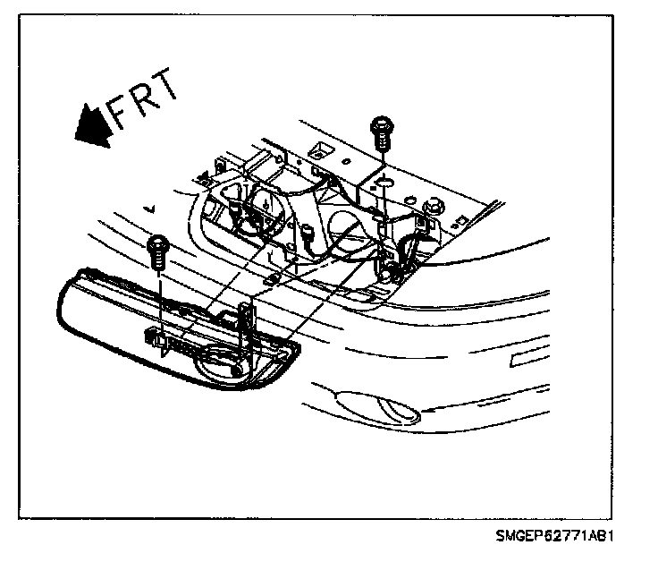 2. Remove headlamp attachment bolts, one upper and one lower, connecting to the headlamp mounting bracket.