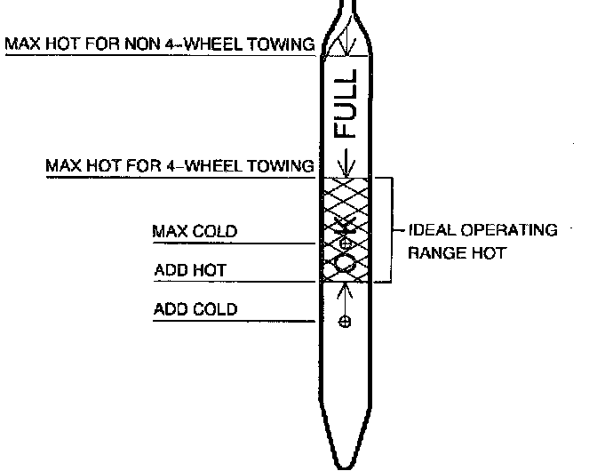 IMPORTANT: The "Add Cold" and "Max Cold" marks on the oil level indicator are for reference only. To determine the proper transaxle fluid level, it must be checked according to the procedures above.