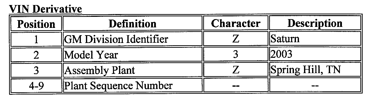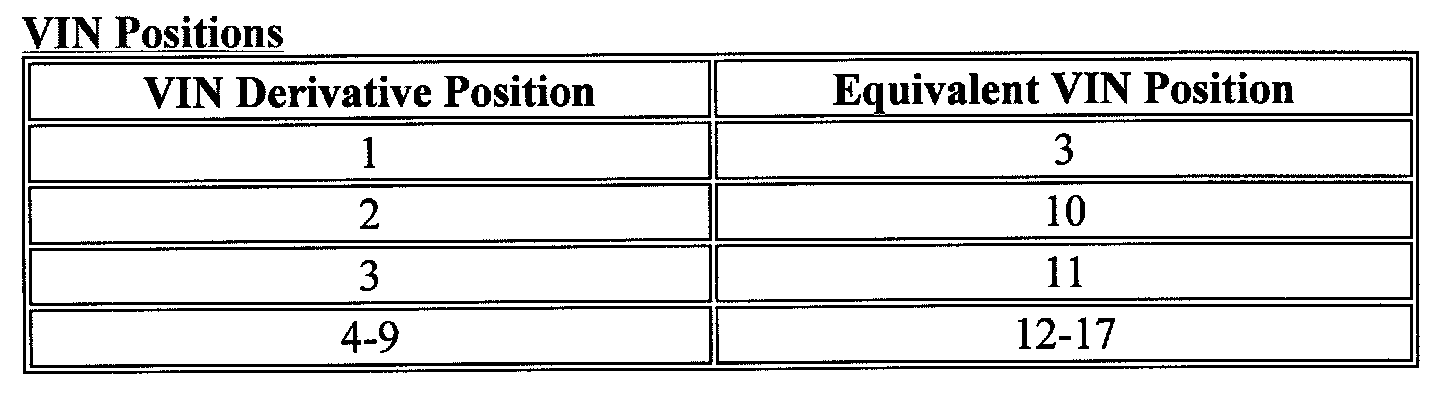 A VIN derivative contains the following nine positions:
