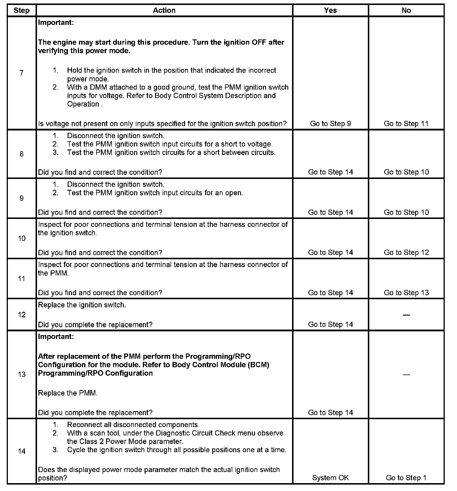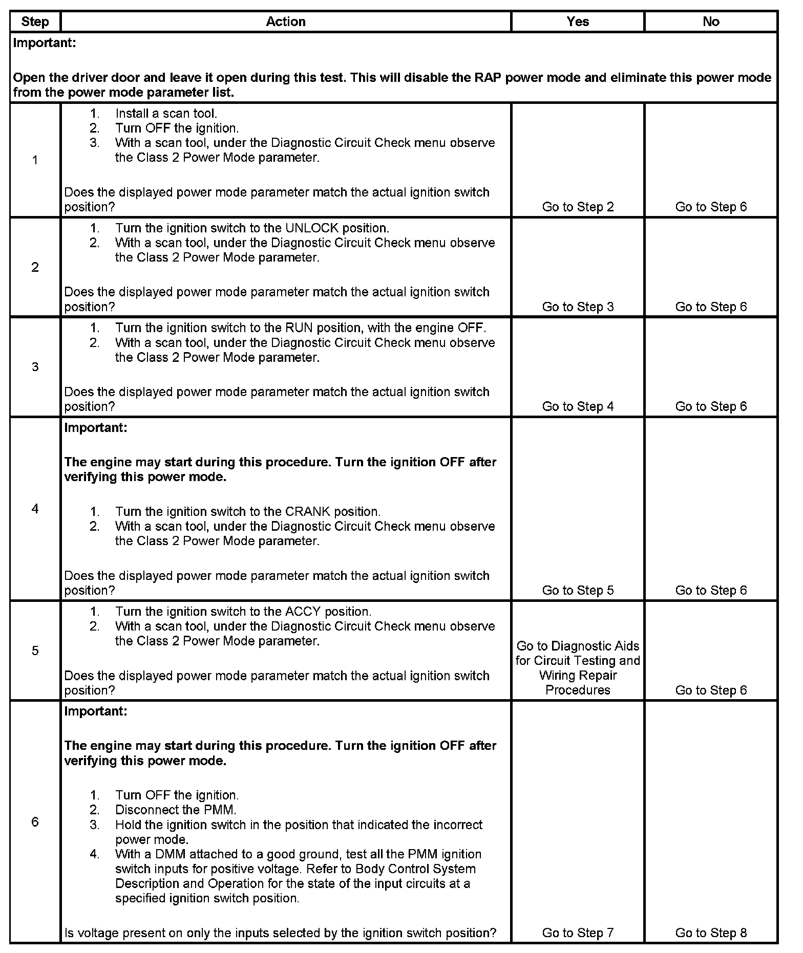 Normal vehicle serial data communications and module operations will not begin until the system power mode has been identified. Discrete wires from the ignition switch contacts are monitored by a module which acts as the power mode master (PMM) in order to determine the correct power mode. The module which is the PMM communicates the system power mode to all modules on the serial data lines. Refer to Body Control System Description and Operation to identify which module is the PMM and the applicable power mode look up table.