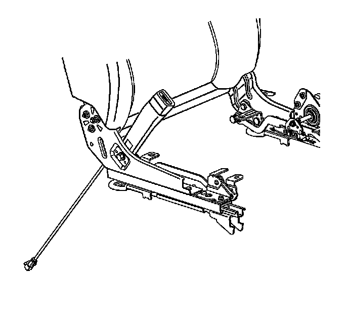 2. Remove the seat cushion side trim. Refer to Seat Cushion Outer Trim Panel Replacement - Front Seat (Fold Flat) (Seat Cushion Outer Trim Panel Replacement - Front Seat (Fold Flat))Seat Cushion Outer Trim Panel Replacement - Front Seat (Non-Fold Flat) (Seat Cushion Outer Trim Panel Replacement - Front Seat (Non-Fold Flat)) .