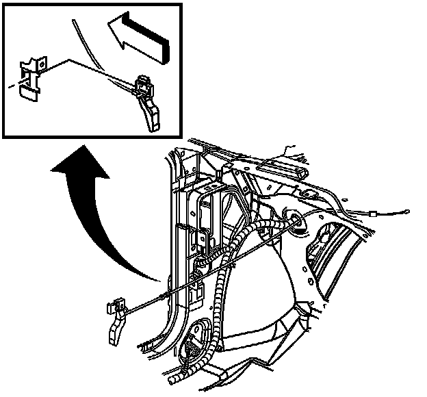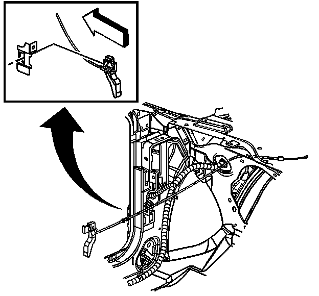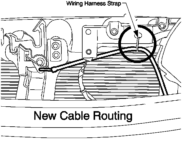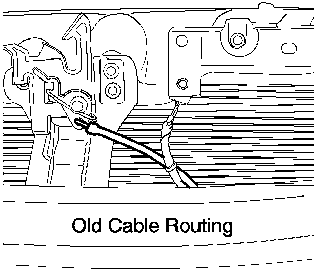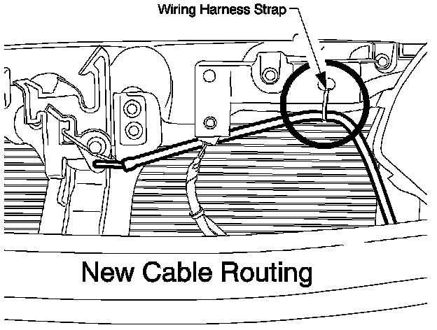 The cable must be routed so it "rises" as it leaves the hood latch mechanism. This upward positioning of the cable will prevent moisture intrusion.