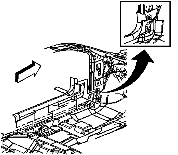 5. Inside the vehicle, remove the left front carpet retainer. Refer to the "Carpet Retainer Replacement - Front" procedure in the Interior Trim section located in the appropriate 2003 Saturn ION Service Manual.