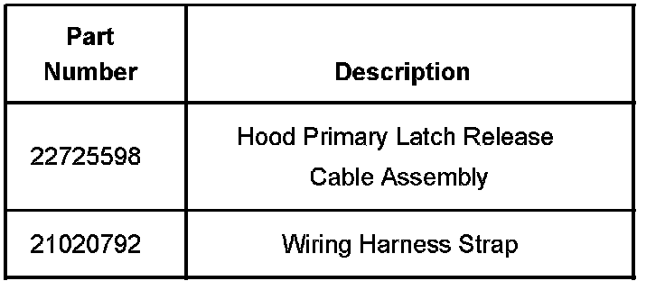 Some customers may comment that the hood latch release cable is frozen and the hood latch lever will not release the hood latch assembly.