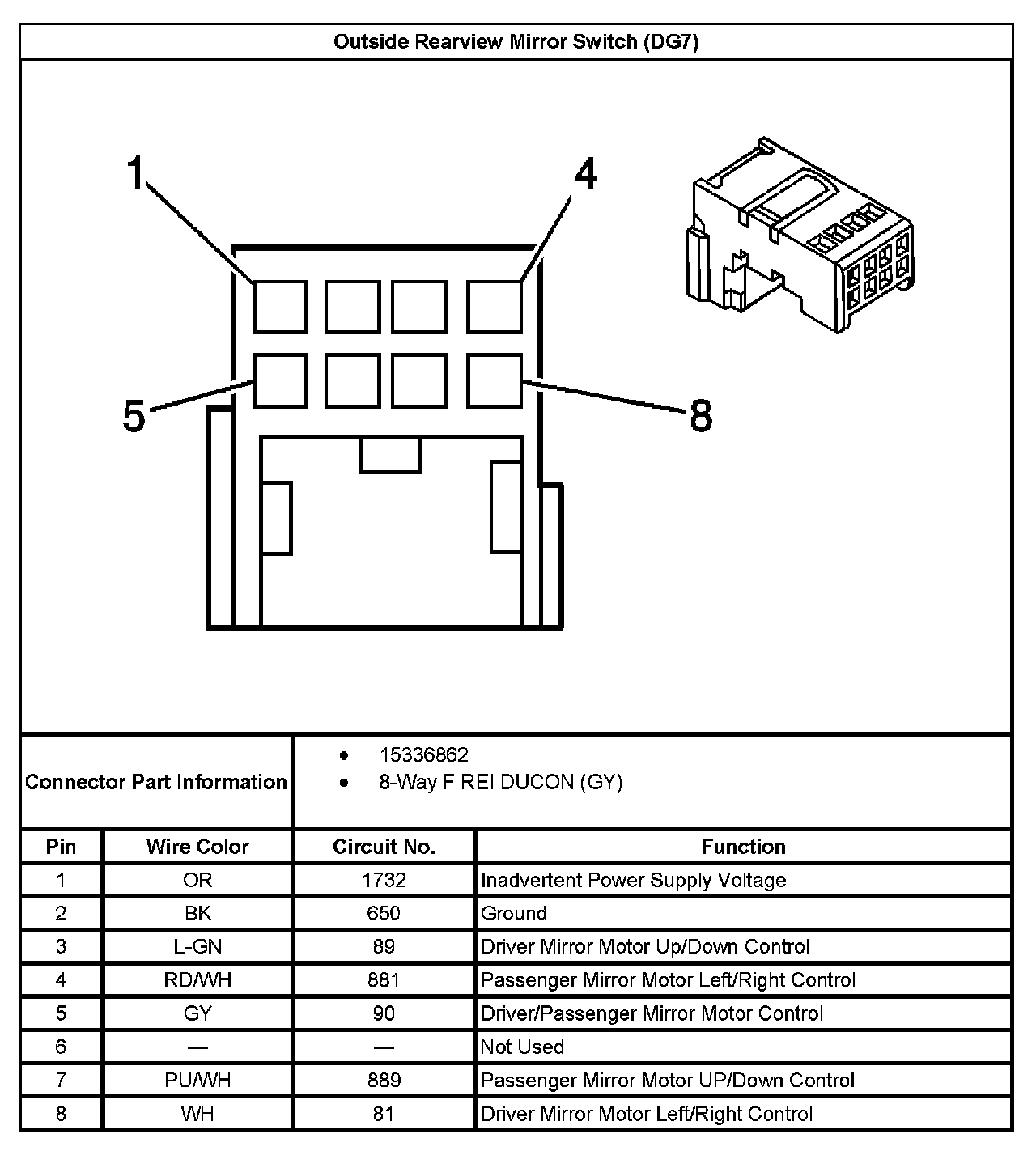 Outside Rearview Mirror Switch (With RPO Code DG7):
