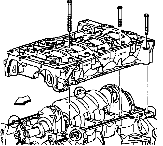 3. Apply sealer P/N 21019581, to the surfaces of the engine block to bedplate mating surfaces.