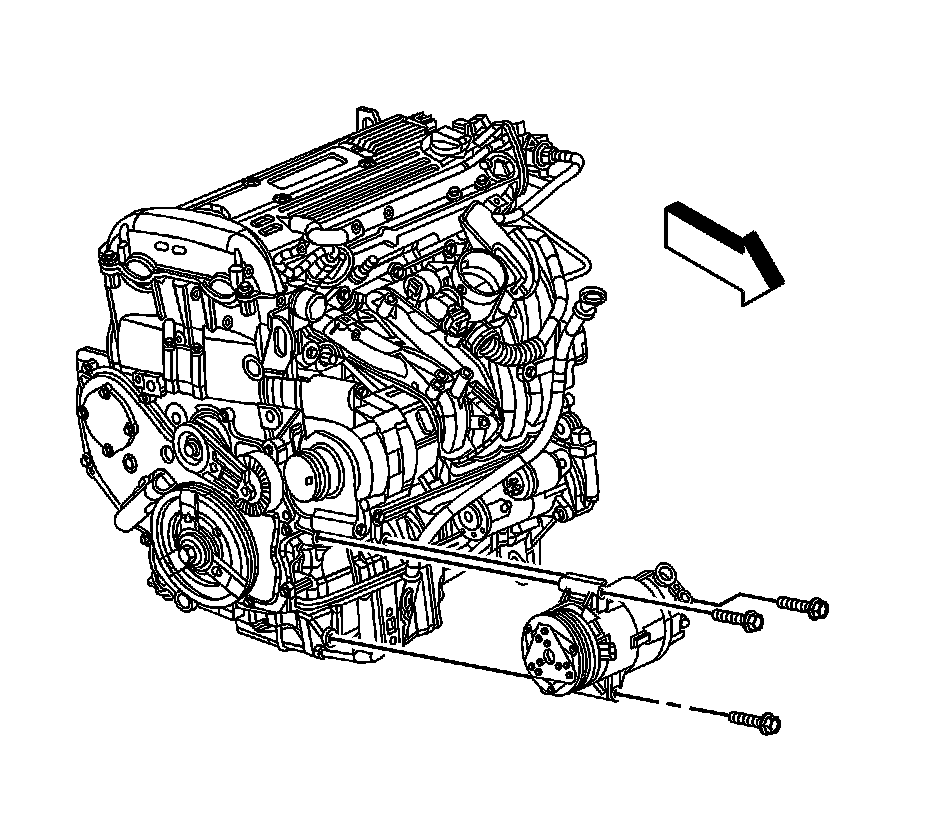 7. Remove the compressor and condenser hose assembly bolt from the compressor.