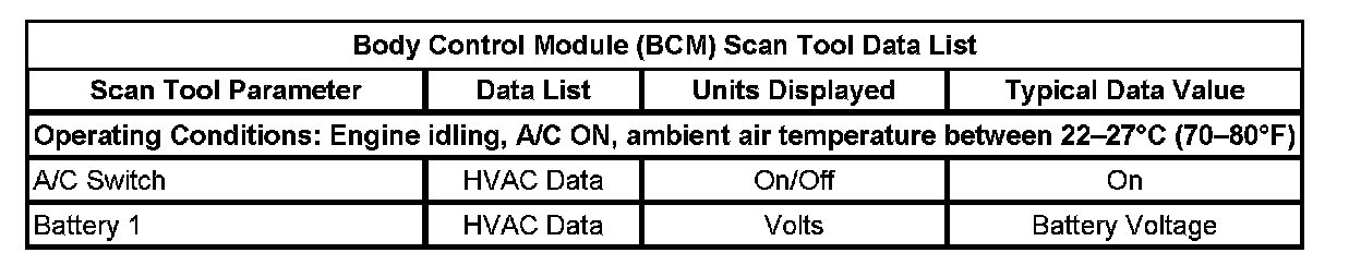 Body Control Module (BCM) Scan Tool Data List:
