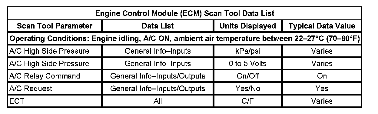Engine Control Module (ECM) Scan Tool Data List: