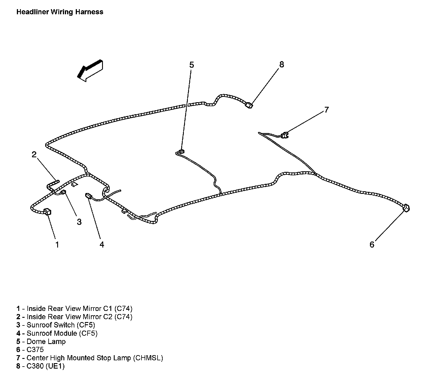 Headliner Wiring Harness: