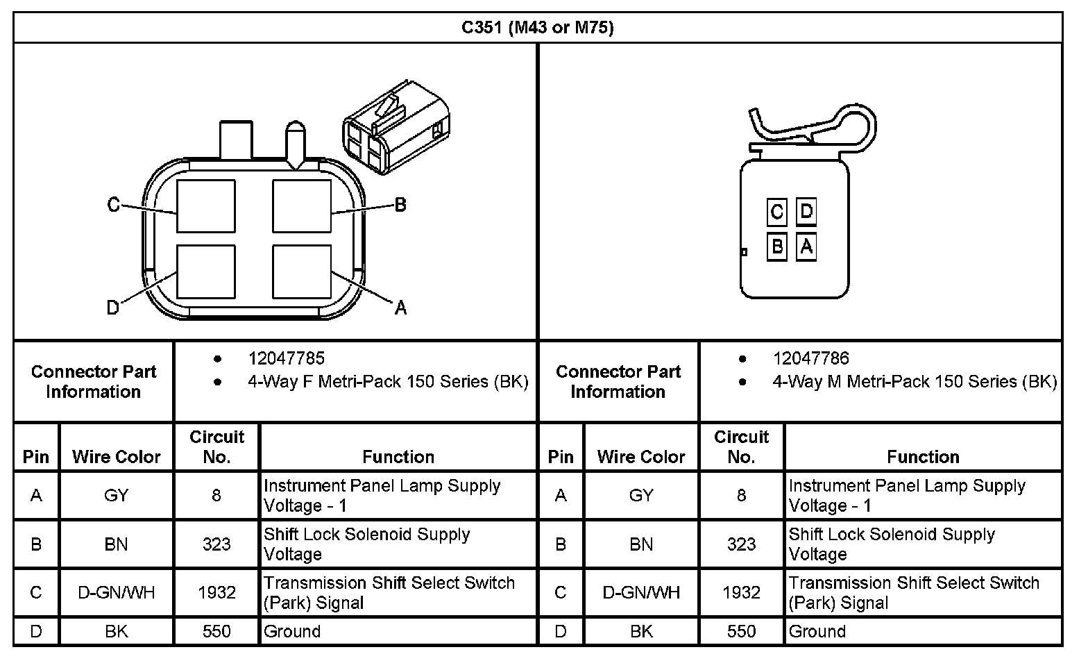 C351 (With RPO Code M43 Or M75):