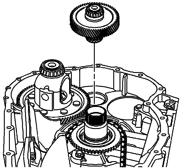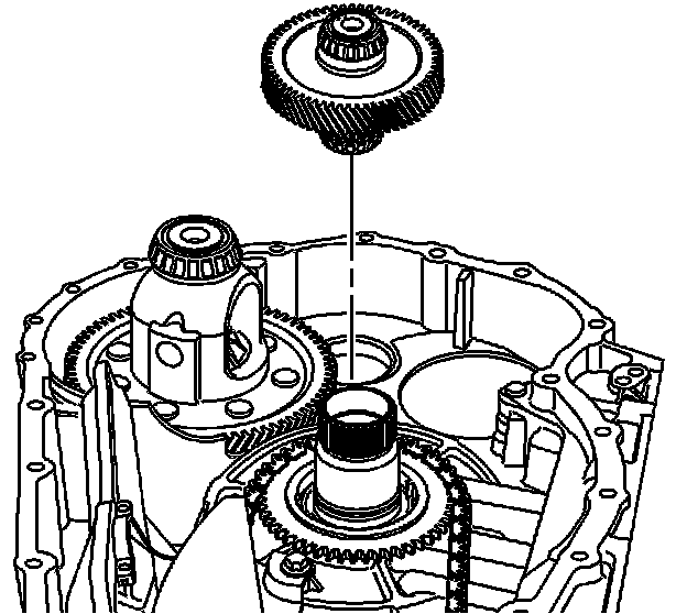 3. Inspect the bearing assemblies on the front differential transfer gear for damage or wear. If a bearing assembly needs replacement, refer to Front Differential Transfer Gear Bearing and Cup Replacement in SI.