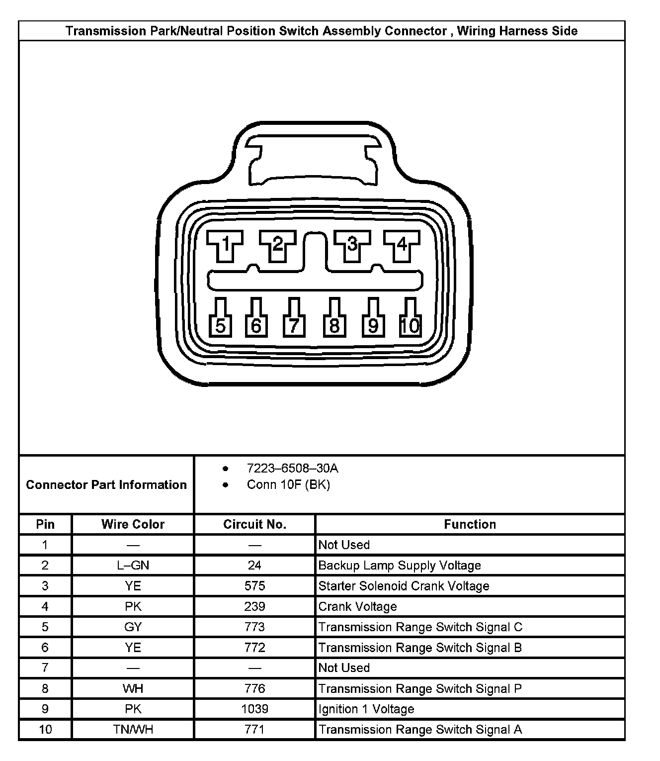 Transmission Park/Neutral Position Switch Assembly Connector, Wiring Harness Side