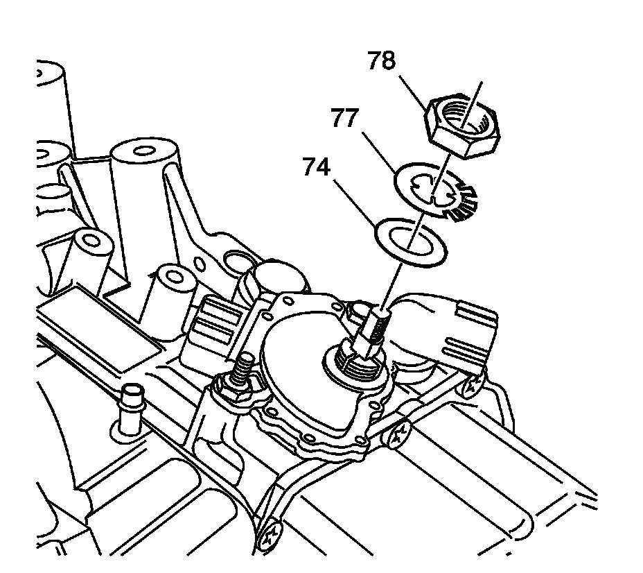 7. Remove the manual shaft nut (78), lock washer (77) and flat washer (74).