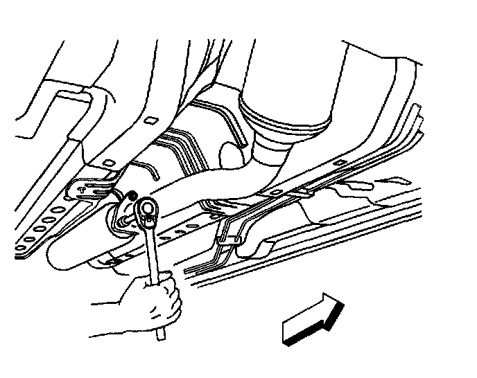 6. Lower the converter pipe to rest on the rear crossmember of the front suspension frame.