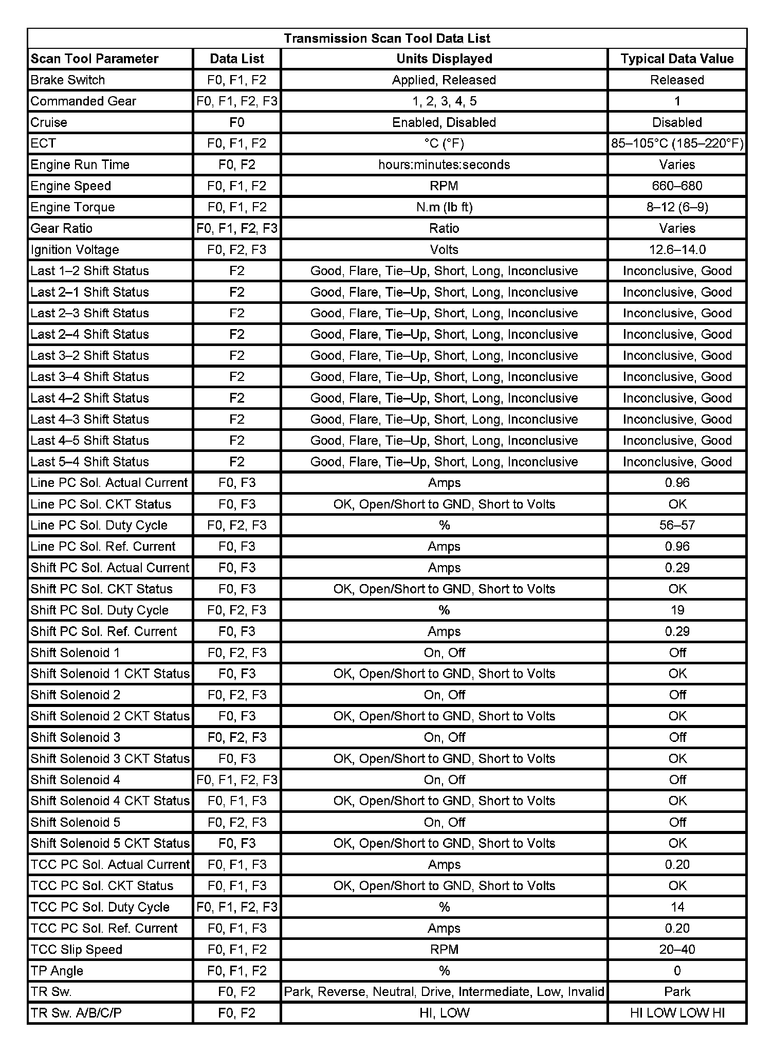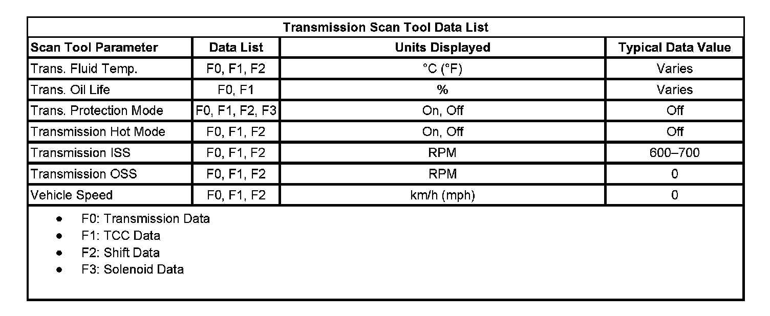 Transmission Scan Tool Data List