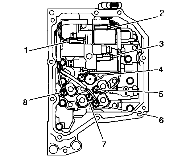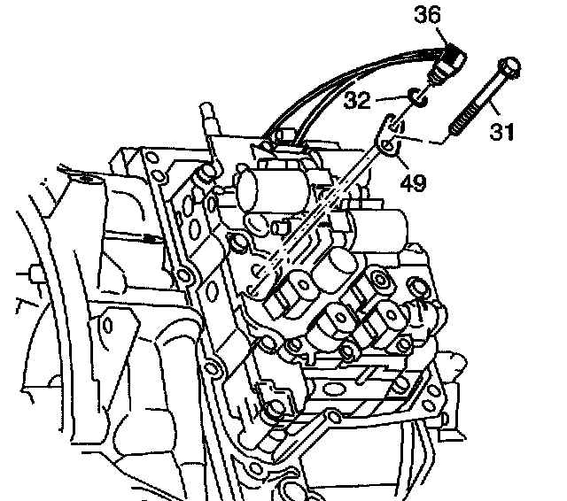 6. Install the transmission fluid temperature sensor (36) into the front control valve body fluid temperature sensor bore.