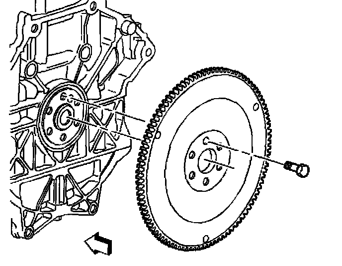2. Remove the flywheel bolts, and note the position of the flywheel to the crank shaft