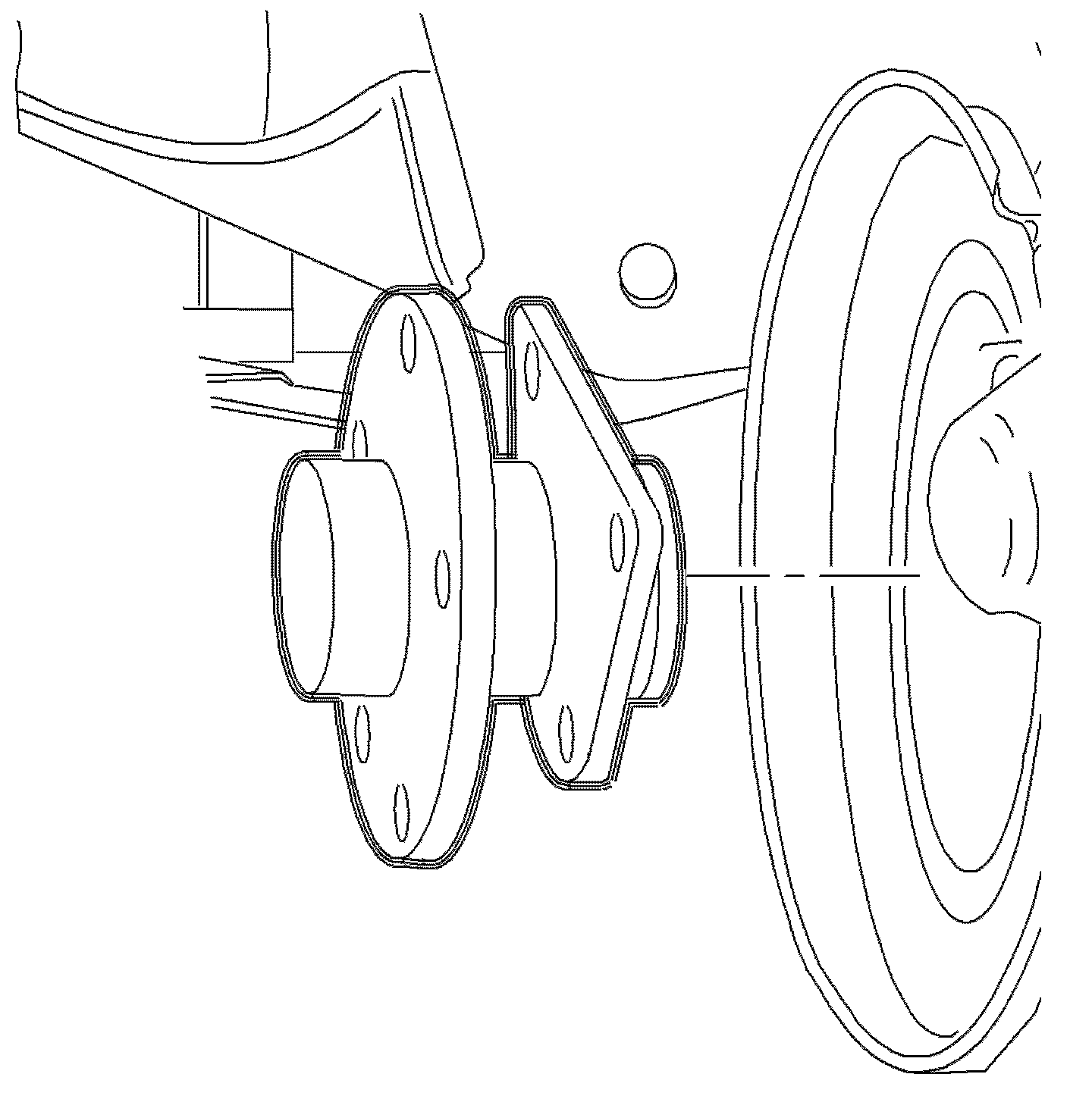 7. Remove the hub-to-knuckle nuts, the hub, and the backing plate from the knuckle.