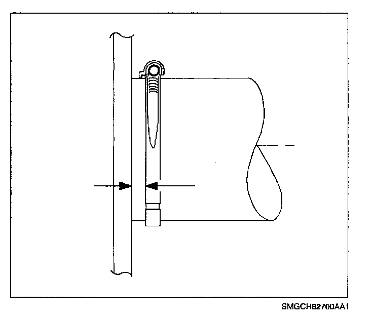 NOTE: Ensure that the fuel pipe connecting hose is installed until it touches the fuel tank body. The hose clamp should be located within 6 mm (1/4 in.) of the end of the connector hose.